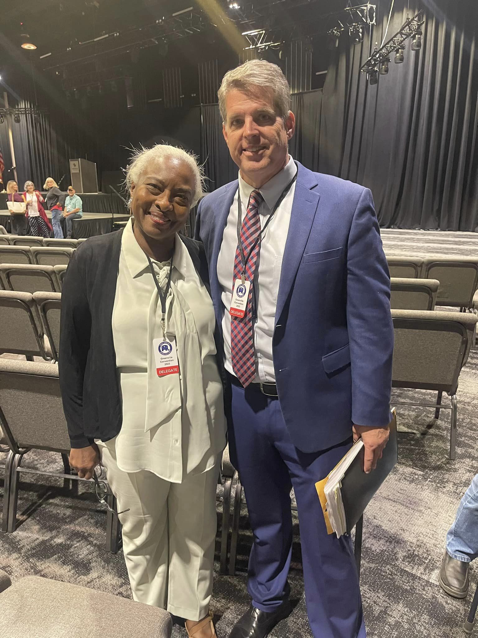 IX. Nominations for Teller/Credentialing Committee – Jeff Davis, Timberlake, nominated Heather Sheen for Teller chairman, and Joe McLaughlin for Credential chairman. Second by Harrison Musselwhite, Simpsonville 6. No other nominations. Both were elected by Acclamation as there are no other nominations. **During hiatus to await Credential Report, state delegate ballot was reviewed for misspellings.**