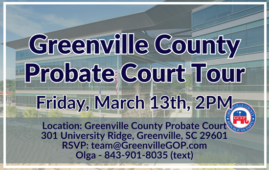 You are invited to join us for the Greenville Probate Court Tour this Friday, March 13th, 2:00PM, 301 University Ridge Greenville County Square. We are looking forward to an insightful behind-the-scenes look at the local judicial system and its operations. This is also a fantastic opportunity to see firsthand how our local probate system handles estates, wills, guardianships, and more in South Carolina’s busiest probate court!