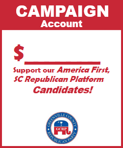 The Greenville County Republican Party (GCRP) is a 100% volunteer and donor supported organization. We do not receive any funding from the state or national level, so we are 100% dependent on YOU for our success. Help us further the America FIRST / SC Republican Platform Agenda in the Great State of South Carolina!